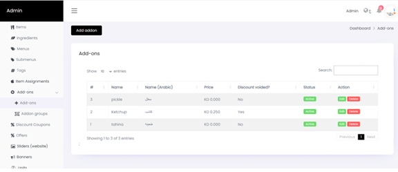 2. Go to 'Add-ons' → '+ Add-ons' to create or edit extra items.