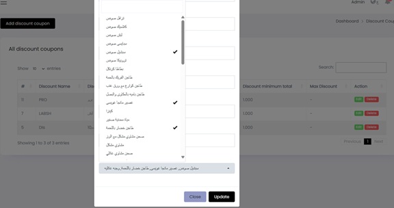This guide explains how to create and manage discount coupons in the restaurant POS system. You will learn how to define coupon details in English and Arabic, set the discount percentage, define usage limits, and exclude specific items from receiving the discount.