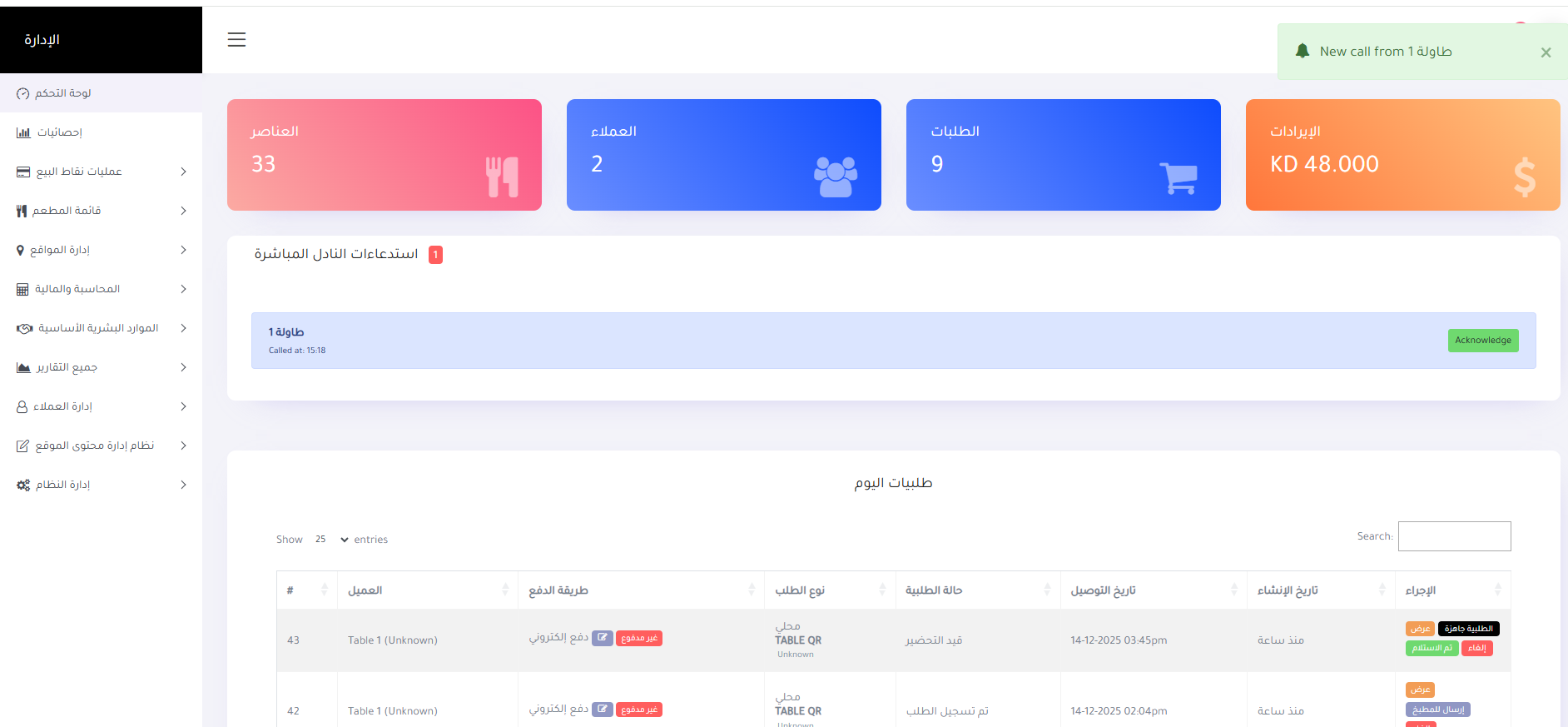 كيفية تقديم طلب باستخدام نظام نقاط البيع آخر تحديث: December 14, 2025 image.png 25.87 KBعند الضغط علي هذا الخيار يتم اظهار الشاشة التالية للاختيار من الاصناف الموجودةimage.png 300.95 KBوعند حفظ الطلب يظهر بنقطة البيع كما بالصورة التاليةimage.png 216.6 KB